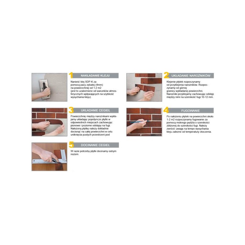 Płytki dekoracyjne SDP-C mogą być klejone wyłącznie klejem SDP-K. Przed użyciem korzystnie jest klej wymieszać.