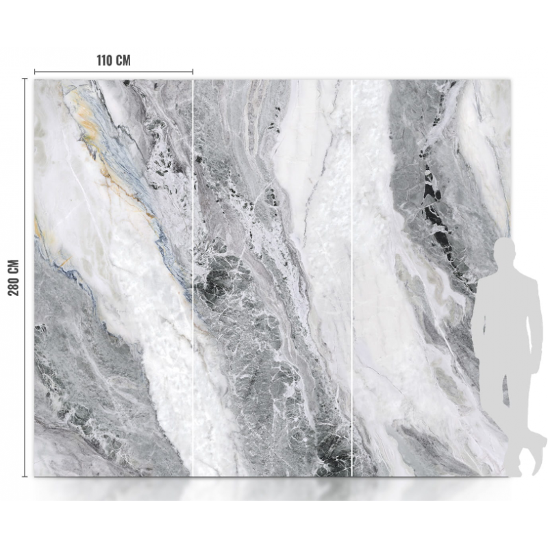 Wielki Format (2800 x 1100 mm): Wysokość 2,8 m pozwala na montaż od podłogi aż po sufit, eliminując konieczność stosowania poziomych fug i łączeń, co optycznie powiększa każde wnętrze.
